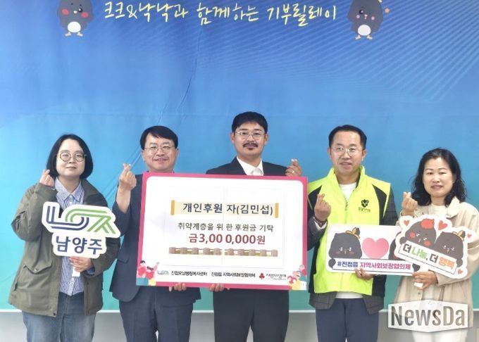 뉴스다 최광묵 기자 | 남양주시는 29일 진접오남행정복지센터에서 김민섭씨가 취약계층 지원을 위해 후원금 300만 원을 전달했다고 밝혔다.