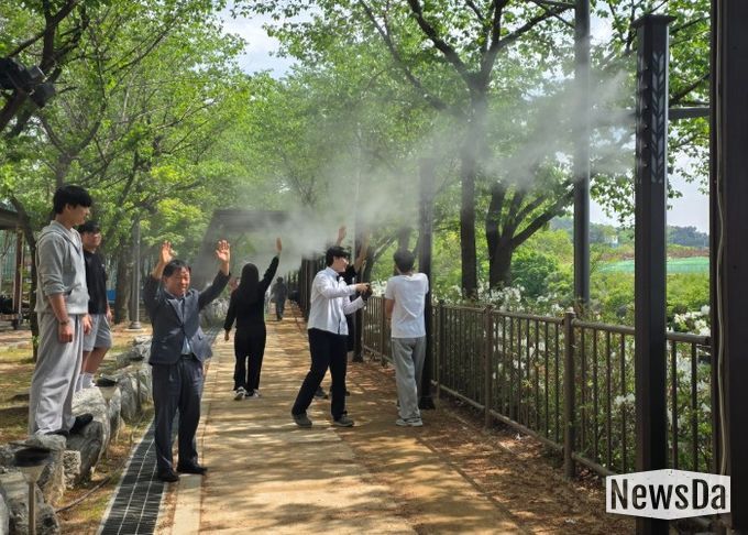 뉴스다 최광묵 기자 | 남양주시 진건읍은 여름철 폭염 대응을 위해 사능천 맨발걷기길에 ‘쿨링포그(Cooling Fog)’를 설치했다고 29일 밝혔다.