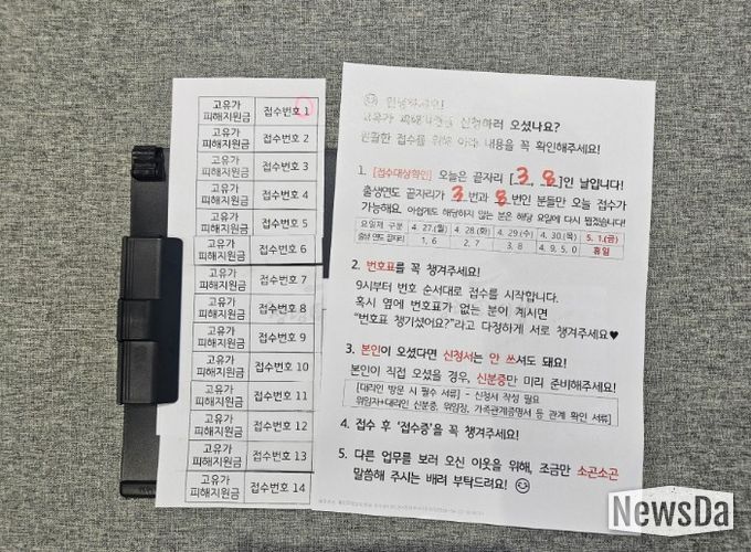 오학동은 최근 ‘고유가 피해지원금’ 신청이 시작됨에 따라, 업무 개시 전부터 대기하는 주민들을 위해 대기 공간에 배려가 담긴 안내 편지를 비치했다.