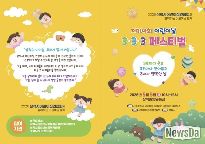 뉴스다 최광묵 기자 | 삼척시는 제104회 어린이날을 맞아 어린이와 가족이 함께 즐길 수 있는 행사들을 개최한다고 밝혔다.