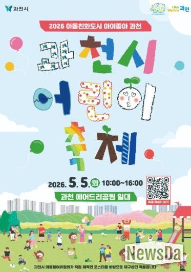 뉴스다 최광묵 기자 | 과천시는 다가오는 5월 5일 제104회 어린이날을 맞아 어린이와 가족이 함께 참여하는 ‘2026년 과천 어린이 축제’를 과천에어드리공원 일대에서 개최한다고 밝혔다.