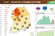 뉴스다 최광묵 기자 | 국토교통부와 한국부동산원(원장 손태락)은 '25년 연간 지가변동률 및 토지거래량을 발표했다. ◆ 지가변동률 '25년 연간 전국 지가는 2.25% 상승했다. 상승폭은 '24년(2.15%) 대비 0.10%p 확대, '23년(0.82%) 대비 1.43%p 확대된 것으로 나타났다. '25년 4분기 지가변동률은 0.61%로, 3분기(0.58%) 대비 0.03%p, '24년 4분기(0.56%) 대비 0.05%p 높은 수준으로 나타났다. (지역별) '25년 지가변동률은 수도권(2.77% → 3.08%)은 '24년 변동률 대비 높은 수준, 지방권(1.10% → 0.82%)은 낮은 수준을 보였다. (시·도) 서울(4.02%), 경기(2.32%) 2개 시도가 전국 평균(2.25%)을 상회했다. (시·군·구) 서울 강남구 6.18%, 서울 용산구 6.15%, 서울 서초구 5.19% 등 252개 시군구 중 44개 시군구가 전국 평균을 상회했다. 또한, 252개 시군구 중 200개 시군구가 0.00% ~ 2.40% 변동률을 보인 가운데, 수도권이 지방보다
