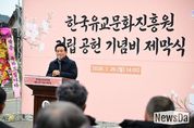뉴스다 최광묵 기자 | 논산시는 26일 노성면에 위치한 한국유교문화진흥원에서 ‘기념비 제막식’을 개최했다. 제막식에는 조관행 노성면 어르신회장을 비롯해 백성현 논산시장, 조용훈 논산시의회의장 및 시 의원, 관내 유관기관과 단체 관계자 등 200여 명이 참석했다. 백성현 논산시장은 “이 세상은 누군가의 희생과 헌신의 씨앗으로 피어나는 꽃과 같다”며 “민족의 얼을 길이 보전하기 위해 큰 결심을 해 주신 종중 어르신들께 깊은 감사의 인사를 드린다”고 말했다. 이어 “전 세계적으로 유학에 대한 관심이 높아지고 있는 만큼, 한국유교문화진흥원은 논산의 뿌리깊은 유교 문화와 정신을 널리 전파하는 중심 역할을 하게 될 것”이라며 “문화, 경제, 농업, 국방 등 모든 분야에서 논산의 가치를 높이기 위해 실천하는 행정을 펼쳐 나가겠다”고 말했다. 지난 2022년 개관한 한국유교문화진흥원은 한국유교문화와 충청지역 국학의 대표적인 연구기관이다. 건립 과정에서 파평윤씨노성대종중은 약 2만 평의 토지를 기부하며 논산이 지닌 유교적 가치와 정신을 후대에 온전히 계승하고 지역 문화의 뿌리를 굳건히 세울 수 있도록 하는 데