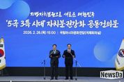 뉴스다 최광묵 기자 | 대한민국시장·군수·구청장협의회는 2월 26일 광주 국립아시아문화전당에서 민선8기 4차년도 제3차 공동회장단회의를 개최하고,『5극3특 시대 자치분권 강화 공동건의문』을 발표했다. 협의회 조재구 대표회장은 건의문을 통해“수도권 집중 극복과 지역 주도의 새로운 국가발전전략인 5극3특 균형성장 정책의 성패는 기초지방정부의 권한과 재정 확충에 달려 있다”고 했다. 이를 위해 그 초석이 되는 전남·광주 행정통합이 자치분권의 새로운 이정표로서, 지역성장과 경쟁력 강화의 모범모델로 자리매김 할 것을 강조하면서,“더 강화된 지방분권, 더 확대된 지방재정”을 위한 제도개선을 정부와 국회에 강력히 건의했다. 주요 건의내용은 ▲권한이양을 통한 기초지방정부 지방분권 강화 ▲지방교부세 확충과 보통교부세 자치구 직접 교부를 통한 지방재정의 확충 ▲국가균형성장 계획 및 정책 수립 과정에서 기초지방정부 협의 의무화 등이다. 한편, 협의회에 따르면 민선8기 후반기 대표적인 성과로 중앙지방협력회의에 기초지방정부 참여가 확대되어, 기존 대표회장 1명에서 시장․군수․구청장별 1명씩, 총 3명으로 확대될 예