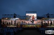 뉴스다 최광묵 기자 | 제51회 홍의장군축제 개막식이 17일 저녁 의령군민공원 일원에서 열렸다. 이날 개막식은 의병의 상징인 의병탑에서 출발한 화려한 의병출정퍼레이드로 시작됐다. 천여 명이 참여한 대규모 퍼레이드 행렬이 축제장으로 입장하며 장관을 연출했고, 축제의 백미답게 관람객들의 시선을 사로잡았다. 비가 내리는 궂은 날씨에도 7000여 명의 군민과 관광객이 현장을 찾아 개막식의 열기를 더했다. 의병을 주제로 한 공연이 펼쳐지며 축제 분위기를 한층 끌어올렸다. 특히 의령군이 인공지능(AI) 기술을 활용해 제작한 영상 콘텐츠가 공개돼 눈길을 끌었다. 영상에서는 곽재우 장군을 비롯한 17장령 전원이 대형 스크린에 구현됐으며, 강가를 배경으로 한 전투 장면이 펼쳐지며 마치 전장 한가운데에 들어온 듯한 몰입감을 선사했다. 불길과 연기가 피어오르는 가운데 의병장들이 결연한 표정으로 전장을 바라보는 모습은 긴박한 상황을 생생하게 전달했다. 17장령 각각의 메시지도 함께 구현되며 전장에 나서는 의병들의 결연한 의지를 드러냈다. 이 가운데 영장 윤탁의 “죽음보다 무서운 것은 나라를 잃는 통탄이다”라는 외침은