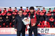뉴스다 류대현 기자 | FC강릉(재단법인 강릉시민축구단)은 2026시즌을 앞두고 직무대행 체제였던 감독직위에 임다한 감독을 임명하여, 새 시즌을 향한 팀 운영 체제를 완성했다. 구단은 2026년 1월 30일, 임다한 감독 임명식을 개최했다. 이날 FC강릉 이사장인 김홍규 강릉시장이 직접 임명장을 수여하며, 감독 직무대행 체제로 운영되던 팀이 정식 감독 체제로 전환했음을 대외적으로 분명히 했다. 임다한 감독의 선임을 계기로 FC강릉은 2026시즌을 향한 지휘 체계를 명확히 정립하고, 전지훈련을 포함한 시즌 준비에 속도감 있게 돌입할 계획이다. 임명식 직후에는 2026시즌을 대비해 구성이 완료된 선수단(40명: 코치8, 선수단32)의 첫 공식 행사로 단체사진 촬영이 이어졌다. 이번 행사는 완성된 선수단의 현재 모습을 대중에게 처음 선보이는 자리로, 2026시즌 FC강릉의 출발을 상징하는 장면이 될 전망이다. 또한 김홍규 이사장은 전지훈련을 앞둔 선수단에게 격려와 응원의 메시지를 전하며 선전을 당부했고, 선수단 역시 새 시즌을 향한 각오와 결의를 다지는 시간을 가졌다. FC강릉 최윤순 단