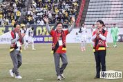 뉴스다 류대현 기자 | 김태흠 충남도지사는 2일 이순신아산종합운동장에서 열린 ‘하나은행 K리그2 2026’ 파주 프런티어FC와의 충남아산FC 홈 개막전을 찾아 1부 리그 승격을 기원하고 선수단을 격려했다. 충남아산FC 명예구단주인 김 지사는 이날 시축을 통해 1부 리그 승격을 위한 승리를 기원하고, 관중들과 함께 경기를 관람하며 뜨거운 응원을 보냈다. 이 자리에서 김 지사는 “충남아산FC는 2024년 준우승한 명문구단으로서 강한 저력을 가진 팀”이라면서 “올해는 최대 4개 팀이 K리그로 올라갈 수 있는 만큼 이번 기회에 1부 리그로 진출해야 한다”라고 강조했다. 이어 김 지사는 “도 차원에서도 지난해보다 훨씬 강화된 지원으로 1부 리그 승격을 끝까지 밀어붙일 것”이라며 “도민 여러분께서도 충남아산FC를 힘차게 응원해 주시길 바란다”라고 말했다.