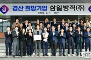 뉴스다 최광묵 기자 | 경산시는 2026년 2분기 경산 희망기업으로 삼일방직(주)을 선정하고, 1일 시청 대회의실에서 경산 희망기업 선정식을 가져 트로피와 현판을 수여했다. 진량읍에 위치한 삼일방직(주)(대표 노희찬)은 45년 이상의 업력을 보유한 섬유 제조 강소기업으로 2010년 부설 연구소(PILOT 공장)를 설립하여 신제품개발과 공정개선에 집중하며 2013년 섬유업계 최초로‘월드클래스 300 프로젝트’에 선정되는 쾌거를 이루며 지역기업으로서 탄탄한 기반을 다져왔다. 특히, 2017년에는 미국 애틀란타 소재의 중견 방적 기업인 뷸러 퀄리티얀스(BQY)를 인수하는 전략적 선택과 단계적인 설비 투자로 현지화에 성공하며 미주와 유럽 시장에 진출하는 교두보를 마련했다. 또한, 사원들의 자기 계발 교육비 지원, 학자금 지원 제도, 근로복지 기금을 운영하며 근로자의 삶의 질 향상에도 최선을 다해왔다. 그로 인해 창립 이래 단 한 번의 노사분규도 발생하지 않았으며, 노(勞)와 사(使)가 상생 협력하는 선진적인 노사 문화 정착에 앞장섰다. 노희찬 대표는 “경산 희망기업으로 선정되어 지역기업으로서 책임감이