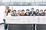 뉴스다 최광묵 기자 | (사)경기도여성단체협의회 광주시지회는 17일 지역 내 취약계층을 위해 먹거리 꾸러미 40세트를 광주시에 전달했다. 이번 나눔은 지난 11월 장수돌침대에서 기탁한 성금을 활용해 마련됐으며 소머리국·참치캔·미역 등 5만 원 상당의 식료품으로 구성된 꾸러미는 협의회 회원들이 정성스럽게 포장해 사례 관리 및 긴급복지지원 대상 가구에 전달됐다. 양미순 광주시여성단체협의회장은 “다가오는 연말, 도움이 필요한 이웃들에게 따뜻한 마음을 전할 수 있어 매우 뜻깊다”며 “작은 정성이지만 어려운 분들께 힘이 되길 바라며 앞으로도 지역사회의 따뜻한 나눔 문화가 지속될 수 있도록 노력하겠다”고 말했다. 이에 대해 방세환 시장은 “지역사회의 나눔 확산에 앞장서는 광주시여성단체협의회에 감사드린다”며 “소외되는 이웃 없이 누구나 따뜻한 겨울을 보낼 수 있는 광주시를 만들기 위해 최선을 다하겠다”고 전했다. 한편, 광주시여성단체협의회는 여성의 사회참여 확대와 복지 증진을 위해 다양한 봉사활동과 사업을 펼치며 지역사회에서 든든한 역할을 이어가고 있다.