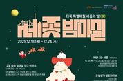 뉴스다 최광묵 기자 | (재)세종시문화관광재단(대표이사 박영국)은 세종의 연말을 풍성하게 채울 ‘12월 세종 밤마실 주간’을 오는 18일부터 24일까지 운영한다고 밝혔다. ‘세종 밤마실 주간’은 세종시 야간 문화관광 활성화를 위해 시민과 관광객 모두가 즐길 수 있는 다양한 프로그램을 모아 운영하는 기간이며, 올해는 4·6·9·10·12월 총 5회를 진행한다. 12월 세종 밤마실 주간에는 세종의 겨울밤을 즐길 수 있는 야외 프로그램이 눈길을 끈다. ‘어반나잇 세종’은 18일부터 21일까지 크리스마스 콘셉트로 단장해 돌아오며, 특히 시즌 한정 ‘크리스마스 마켓’을 운영하여 공연·체험·마켓이 함께하는 크리스마스 분위기를 선사한다. 한글시민상상문화거리는 19일부터 조치원 청과거리 일대에 조성된다. 한글과 조치원을 담은 거리 디자인이 연출되며, 청과거리와 연계한 과일 소매상점도 운영될 예정이다. 국립세종수목원은 12월 24일 시즌 프로그램인 ‘Merry Red!’의 일환으로 야간개장과 무료입장을 실시하며, 조명·전시·체험 요소를 더해 겨울철 수목원을 색다르게 선보일 예정이다. 야외 프로그램