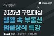 뉴스다 최광묵 기자 | 부산 서구는 오는 21일 서구청 신관 4층 다목적홀에서‘신신당부! 2025년 구민대상 생활 속 부동산 법률상식 특강’을 개최한다고 밝혔다. 이번 특강은 임대차 계약 관련 정보와 필수 법률 상식을 제공해 전세사기 피해를 예방하기 위해 마련됐다. 강사는 법무법인 거산의 판사 출신인 신중권 변호사로 조직적 전세사기 범행(2019년‘화곡동 전세사기’사건)의 고소 대리를 전국 최초로 진행한 이력이 있으며, JTBC '손 없는 날', MBC '다수의 수다' 등 각종 방송에도 출연하여 전세사기 피해의 심각성과 예방법을 알린 바 있다. 신 변호사는 ▲전세사기 사례 및 대처 방법 ▲임대차 계약 시 주의사항 및 필수 특약사항 ▲생활 속 부동산 법률 상식 등 임대차 계약 시 알아야 할 정보를 전달할 계획이다. 특강은 오후 4시부터 서구청 신관 4층 다목적홀에서 무료로 진행되며, 관심 있는 구민 누구나 사전 신청 없이 참여 가능하다. 공한수 서구청장은 "전세사기 피해를 줄이기 위해서는 주민들도 올바른 임대차 계약과 부동산 법률 상식에 대한 정보를 숙지하는 것이 중요하기 때문에 이번