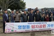 뉴스다 최광묵 기자 | 지난 10월 21일 미양면 영청동 쌈지공원에서 주민자치위원회가 영청동 쌈지공원 현판식을 개최했다. 이번 행사는 위원회가 주도해 조성한 쌈지공원을 마을의 새로운 휴식공간으로 공식 개방하는 자리로, 미양면 주민 5명과 주민자치위원 15여 명이 참석해 자리를 빛냈다. ‘영청동 쌈지공원 가꾸기’는 미양면 주민자치위원회가 마을 내 유휴공간을 정비하고 꽃과 나무를 식재하여 쾌적한 녹색쉼터를 조성한 사업이다. 특히 이번 현판식에서는 위원들이 공원 곳곳을 점검하고 주변 환경을 정돈하는 등 공원 가꾸기 활동을 이어가며 의미를 더했다. 유만곤 미양면 주민자치위원장은 “작은 공간이지만 주민들이 함께 땀 흘려 가꾼 곳이라 더욱 소중하다”며 “앞으로도 마을을 가꾸고 공동체 정신을 살리는 주민자치 활동을 지속해 나가겠다”고 말했다. 손인철 미양면장은 “주민 스스로 마을 환경을 돌보고 아름답게 가꾸는 모습이 지역 공동체의 좋은 본보기가 되고 있다”며 “주민자치 활성화를 위해 지속적으로 지원하겠다”고 전했다.