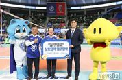 뉴스다 류대현 기자 | 이장우 대전시장은 21일 대전충무체육관에서, 6개월간의 V-리그 대장정에 나서는 연고팀 대전 삼성화재 블루팡스의 승리를 기원하는 시구에 참여했다. 1세트 종료 후에는 삼성화재 블루팡스×꿈돌이 굿즈를 공동 브랜딩을 위한 상호협력 협약을 체결하고, 스포츠마케팅을 확장하기로 했다.