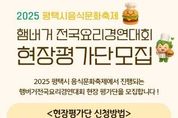 뉴스다 최광묵 기자 | 평택시는 오는 25일 농업생태원에서 ‘2025 평택시 음식문화축제’를 통해 ▲전국 요리경연대회 ▲평택 지역 맛집 및 세계음식 시식·체험관 ▲노 오븐 베이킹 체험관 ▲탄소중립 실천·홍보관 등 다채로운 부스가 운영돼 시민들에게 풍성한 경험을 선사할 예정이다. 전국 요리경연대회는 ‘평택의 맛, 나만의 아이디어로 버거를 완성하다’를 주제로 총 18팀(일반부 10, 가족부 8)이 본선에 진출해 열띤 경연을 펼친다. 지난해와 달리 참가 부문이 일반부와 가족부로 확대됐으며, 시상 규모도 10팀 740만 원으로 늘어나 큰 기대를 모으고 있다. 경연대회의 생생한 현장을 함께할 시민 현장평가단도 사전 모집한다. 10월 24일(금) 오전 9시부터 오후 5시까지 일반부와 가족부 각 20명씩 무작위로 선착순 접수받으며, 편식 없는 고등학생 이상이라면 누구나 신청할 수 있고, 선정된 지원자는 실제 경연 현장에서 요리를 맛보고 평가하게 된다. 또한, 오전 10시에는 빵과당신 인재홍(대한민국 제과명장)이 진행하는 베이킹 체험이 마련돼 있으며, 참가 신청은 24일(금) 오전 10시부터 평택예총 공식 블로그 및 평택