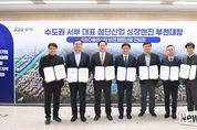 뉴스다 최광묵 기자 | 부천시는 15일 오정구청 대회의실에서 대한항공, SK이노베이션, SK하이닉스, DN솔루션즈 등 4개 기업과 ‘부천대장 R&D 클러스터 비전 파트너쉽 간담회’를 갖고, ‘부천대장 도시첨단산업단지 입주 계약’을 체결했다. 이날 4개 기업은 한국주택토지공사(LH)와 4천1백억 원 규모 토지매매계약도 함께 완료했다. 이번 계약은 3기 신도시 내 산업단지에 기업이 입주하는 첫 사례이자 입주계약과 토지매매계약을 한 자리에서 동시에 마무리한 이례적인 사례로, 절차의 효율성과 투명성을 높였다는 평가다. 이번 계약으로 산업시설용지의 36%(약 13만㎡, 약 3만 9천 평)가 조기 입주 확정됐으며, 총투자 규모는 약 2조 6천억 원이다. DN솔루션즈가 2029년 3월 가장 먼저 준공과 입주를 앞두고 있으며, SK이노베이션과 SK하이닉스는 2030년 말, 대한항공은 2031년 말 입주를 계획하고 있다. 입주가 완료되면 3천7백여 명의 석·박사급 연구 인력이 상주하게 된다. 이번 행사에는 김동연 경기도지사, 조용익 부천시장, 서영석 국회의원(부천시갑)을 비롯해 우기홍 대한항공 부회장, 김필석 S
