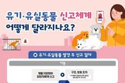 뉴스다 최광묵 기자 | 유기·유실동물 신고체계 어떻게 달라지나요? ■ 유기·유실동물 발견 후 신고 절차 (기존) 개별 지방정부 담당자에게 신고 → 구조, 보호 조치 *지역별로 동물보호센터 등에서 현장 출동 후 구조·보호 (개선) 방법 ① 개별 지방정부 담당자에게 신고 → 구조, 보호 조치 *지역별로 동물보호센터 등에서 현장 출동 후 구조·보호 방법 ② 동물보호상담센터 ☎1577-0954(1) → 관할 지방정부 전화 자동 연결 → 구조, 보호 조치 *지역별로 동물보호센터 등에서 현장 출동 후 구조·보호 방법 ③ 국가동물보호정보시스템 접수 → 접수 내용 관할 지방정부 전달 → 구조, 보호 조치 *지역별로 동물보호센터 등에서 현장 출동 후 구조·보호 [뉴스출처 : 농림축산식품부]