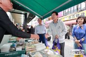 뉴스다 최광묵 기자 | 이상일 용인특례시장은 2일 모수 추석 명절을 앞두고 지역 전통시장에서 장을 보며 상인과 시민들에게 명절 잘 보내시라는 인사를 하고, 어르신들이 기거하는 사회복지시설을 찾아 인사했다. 이 시장은 2일 부인 김미영 여사와 용인을 대표하는 전통시장인 ‘용인중앙시장’을 찾아 과일‧고기‧떡‧전 ㆍ빵 등을 구매하고, 상가를 돌며 상인들과 장을 보러나온 시민들과 인샤하고 정담을 나눴다. 이 시장은 장보기를 마친 후 용인중앙시장 상인회 관계자 등과 함께 전통시장 이용, 물가 안정 노력 등을 강조하는 캠페인에 참여했다. 이상일 시장은 캠페인을 마친 후 김량장동의 ‘용인시 사랑의 집’을 방문했다. ‘용인시 사랑의집’은 지난 2007년 개소했으며, 현재 어르신 34명이 거주하고 있는 노인전용 주거시설이다. 이 시장은 시설에 거주하는 103세 어르신과 94세 국가유공자 어르신을 찾아 건강하게 생활하시라는 인사를 건넸다. 이 시장은 이후 사랑의집 관계자, 어르신 등과 함께 송편을 빚으며, 직접 만든 송편이 쪄서 나오자 맛을 보면서 함께 한 이들과 40여분간 정담을 주고 받았다. &n