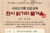 뉴스다 최광묵 기자 | 안양시 석수도서관은 안양대학교 HK+사업단 지역인문학센터와 함께 시리즈기획 인문강좌의 일환인‘한시 읽기의 즐거움’ 강좌를 오는 11월 7일부터 12월 5일까지 운영한다고 17일 밝혔다. 이번 강좌를 통해 수강생들은 작사(作詞)와 작곡(作曲)의 특징을 동시에 지닌 한시(漢詩)의 형식미를 감상하고, 과거와 현재를 잇는 전통이 체현된 문화 텍스트로서의 한시 세계를 탐방한다. 석수도서관 관계자는 “석수도서관과 안양대학교 지역인문학센터가 협업하여 진행하는 이번 시리즈기획 인문강좌를 통해 시민들이 한시의 매력적인 세계를 깊이 탐구하고, 한시를 읽는 즐거움을 알 수 있길 바란다”고 밝혔다. 서울대학교 중국어문화연구소 책임연구원이자 한시 칼럼니스트 강성위가 진행하는 이번 강의는 10월 21일 10시부터 안양시도서관 홈페이지에서 접수하면 된다.