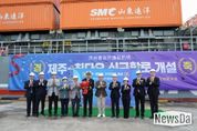 뉴스다 최광묵 기자 | 제주항에 57년 만에 첫 국제 정기 컨테이너선이 입항했다. 물류비는 62% 절감되고 운송 시간은 최소 2일로 단축돼 제주 기업들의 수출입 경쟁력이 크게 높아질 전망이다. 제주특별자치도는 18일 오후 2시 제주항 국제여객터미널에서 ‘제주–칭다오 정기 컨테이너선 첫 입항식’을 열고 제주 해상물류의 새 시대 개막을 선언했다. 첫 입항 선박 ‘SMC 르자오’호에는 페트칩, 기계장비 등 약 40TEU의 수입 화물이 실렸으며, 제주에서는 수산물 가공품, 삼다수 등 10TEU 규모의 제품이 중국으로 수출된다. 이번 항로 개설은 1968년 제주항이 무역항으로 지정된 이후 57년 만의 첫 정기 국제항로 개설로, 제주가 글로벌 물류 거점으로 도약하는 역사적 이정표가 됐다. 해양수산부가 지난 7월 말 항로 개설을 승인하고, 8월 운영선사를 확정한 뒤 10월 초 운항계획 신고 절차를 마치면서 본격 운항에 들어갔다. 오는 22일부터는 매주 수요일 오전 정기적으로 제주항에 입항할 예정이다. 이날 입항식에는 오영훈 제주도지사를 비롯해 이상봉 제주도의회 의장, 도내 CIQ(세관․출입국․검