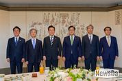 뉴스다 최광묵 기자 | 3일 이재명 대통령과 5부 요인의 오찬은 1시간 40분 동안 화기애애한 분위기 속에 진행됐다. 본격적인 환담에 앞서 우원식 국회의장이 빛의 혁명 1년을 기리는, 아주 특별한 기념패를 이재명 대통령에게 전달했다. 기념패는 계엄군이 국회에 난입하는 과정에서 부숴진 목재 집기를 활용해 만들었습니다. 기념패의 제목은 '빛의 민주주의, 꺼지지 않는 기억패' 이다. 대통령과 5부 요인은 환담에서 빛의 혁명 1년을 맞아 우리 시민들의 힘으로 비상계엄을 막아낼 수 있었다는 데 의견을 함께 했다. 특히 이재명 대통령은 "우리 시민사회에 축적된 문화적 역량이 민주주의를 지켜내는 저항의 힘이 됐다"고 평가했다. 본격적인 환담에서 김상환 헌법재판소장은 "비상계엄 사태 이후 헌법재판소에 헌법교육 요청이 밀려들고 있다"면서 "이참에 헌법교육 인력과 지원을 확충할 필요가 있다"고 말했다. 노태악 중앙선거관리위원장은 비상계엄의 단초가 된 부정선거론을 극복하기 위해 선거교육을 강화해야 한다고 말했다. 이에 이재명 대통령은 "민주주의 기본이 헌법과 선거라면서 구체적인