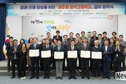 뉴스다 최광묵 기자 | 제주의 고등학생들이 졸업 후 일자리를 찾아 섬을 떠나지 않고, 고향에서 신재생에너지 전문가로 성장할 수 있는 길이 열렸다. 제주특별자치도와 제주특별자치도교육청은 4일 오후 2시 탐라홀에서 제주대학교, 두산에너빌리티, 제주에너지공사, 서귀포산업과학고등학교와 '제주형 협약고등학교(에너지 분야)' 운영을 위한 업무협약을 체결했다. 이번 협약은 교육부의 지역 정주 기반 인재 양성 정책 기조에 맞춰, 학교가 지역 산업 수요에 부합하는 인재를 양성하고 기업은 이를 채용·육성해 제주에 정착시키는 선순환 구조를 구축하기 위해 마련됐다. '제주형 협약고등학교'는 지역 전략산업을 중심으로 도와 교육청, 대학, 기업이 각자의 자원을 모아 학생 맞춤형 교육과정을 운영하는 모델이다. 도와 교육청은 서귀포산업과학고등학교를 '제주형 협약고등학교'로 지정하고, 지역 전략산업과 연계한 에너지 분야 전문인력 양성을 위해 행정적·재정적 지원을 체계적으로 추진한다. 학생들은 신재생에너지 설비 교육과 전기기능사 등 관련 자격증 취득을 통해 실무 역량을 갖추게 되며, 졸업 후에는 제주 지역 기업 취