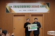 뉴스다 최광묵 기자 | (재)당진문화재단이 2026년 새해 업무의 시작을 지역사회를 위한 따뜻한 나눔으로 알렸다. 재단은 5일 오전 개최된 2026년 시무식에서 ‘희망 2026 나눔 캠페인’ 성금 전달식을 가졌다고 밝혔다. 이번 행사는 새해를 맞이해 지역사회와의 상생 의지를 다지고, 문화예술 기관으로서 공공의 사회적 책임을 다하기 위해 마련됐다. 이날 전달된 성금 200만 원은 재단 임직원들이 십시일반 정성을 모아 자발적으로 마련한 기금으로 구성됐다. 재단 구성원 전체가 한마음으로 뜻을 모아 새해 첫 공식 행사를 기부로 시작하며 나눔 문화 확산에 앞장섰다는 점에서 의미가 깊다. 재단은 이번 성금을 충남사회복지공동모금회 ‘희망 2026 나눔 캠페인’ 계좌로 기탁했으며, 전달된 성금은 지역사회 내 따뜻한 손길이 필요한 곳곳에 임직원들의 소중한 뜻과 함께 전달될 예정이다. 당진문화재단 이원철 대표이사는 “시무식을 통해 임직원이 함께 나눔의 가치를 되새기며 새해를 시작하게 되어 뜻깊다”며, “예술이 시민의 삶에 활력을 주듯, 재단 임직원들의 작은 정성이 이웃들에게는 희망의 불씨가 되길 바란다”고 전했다