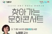 뉴스다 최광묵 기자 | 서울 강동구는 오는 3월 7일 오후 2시, 강동중앙도서관 다목적홀(양재대로84길 63)에서 '2026년 찾아가는 문화콘서트' 1회차를 개최한다고 6일 밝혔다. '2026년 찾아가는 문화콘서트' 1회차는 강동구립 국악관현악 팀 공연과 역사 강연이 어우러진 복합 문화프로그램으로, 지역주민이 일상 가까이에서 수준 높은 인문학과 문화예술을 함께 접할 수 있도록 마련됐다. 이날 강연은 노혜경 교수가 ‘영조의 르네상스 리더십’을 주제로 진행한다. 영조·정조 시대를 ‘조선의 르네상스’로 조명하고 서양 르네상스와의 공통점과 차이점을 비교하며, 변화와 개혁의 시대를 이끈 리더십의 의미를 살펴볼 예정이다. 이를 통해 오늘날 사회에서 요구되는 리더의 역할에 대해 생각해 보는 시간을 갖는다. 강연을 맡은 노혜경 교수는 현재 호서대학교 혁신융합학부 교수로, ‘벌거벗은 한국사’, ‘KBS 역사스페셜’ 등 다수의 방송에 출연해 대중과 소통해 왔다. 또한 『더 리더: 영조 그리고 정조』, 『조선 후기 중앙관청의 숨은 실세, 경아전』 등 여러 저서를 집필했다. 참여 대상은 지역주민 250여 명이며, 참