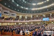 뉴스다 최광묵 기자 | 이재명 대통령과 김혜경 여사는 오늘 오후 여의도순복음교회에서 열린 ‘2026 한국교회 부활절 연합예배’에 참석해 부활의 의미를 되새기며 함께 예배를 드렸다. 이번 부활절 연합예배는 총 73개 교단, 7천여 명이 함께 참여한 뜻깊은 행사이다. '부활! 평화! 사랑'이라는 주제 아래, ‘생명의 부활, 한반도 평화’(요한복음 20장 19-23절)를 표어로 삼아 열렸다. 예배는 2026 부활절연합예배준비위원회 대회장인 이영훈 여의도순복음교회 담임목사의 대회사로 시작해 ▲대표기도 ▲성경봉독 ▲설교 ▲특별기도 ▲통성기도 ▲축도 순으로 진행됐다. 이재명 대통령은 축사를 통해 “해마다 개최되는 부활절 연합예배는 우리 사회에 사랑과 희망의 메시지를 전해 왔다”면서 “늘 나라와 국민을 위해 기도해 주시는 한국교회와 성도 여러분께 국민을 대표해서 감사드린다”고 전했다. 이어 “세계를 지탱해오던 평화와 번영의 질서가 약화되고, 연대와 화합이 아닌 갈등과 다툼이 심화되고 있다”면서 “이럴 때일수록 부활의 의미와 함께 오늘의 주제인 평화, 사랑의 의미를 다시 깊이 되새겨야 할 것”이라고 언급했다.