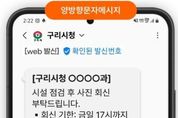 뉴스다 최광묵 기자 | 구리시는 시민들의 긍정적인 호응에 따라 ‘양방향 문자 시스템’ 서비스를 오는 11월 10일부터 확대 운영한다고 밝혔다. ‘양방향 문자 시스템’은 기존의 단방향 안내 문자 발송 방식을 개선해, 시민이 문자 메시지를 통해 직접 회신하거나 문의할 수 있도록 구축한 시스템으로, 올해 하반기부터 시범 운영해 왔다. 서비스가 확대되면 시민들은 ▲시정 안내 ▲민원 처리 결과 확인 ▲설문 참여 ▲회의·행사 참석 여부 회신 ▲지원사업 신청 ▲서류 제출 ▲민원 신고·답변 등 다양한 행정 서비스를 문자 메시지로 간편하게 이용할 수 있어, 시와 더욱 신속하고 편리하게 실시간 소통할 수 있게 된다. 또한 최근 증가하는 문자 결제 사기(스미싱) 피해를 예방하기 위해, 시가 발송하는 모든 공식 문자 메시지에는 구리시 공식 브랜드와 ‘안심 마크’를 표시하는 ‘안심 문자 서비스’도 함께 운영하고 있다. 시민이 문자를 수신하면 발신자 정보란에 [구리시청 안심 마크] 가 표기되며, 메시지 본문에는 “이 문자는 구리시에서 발송한 공식 문자입니다”라는 [확인된 발신 번호] 안내 문구가 기재되어 있어 시민이 안심하고 문자를