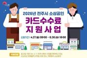 뉴스다 최광묵 기자 | 전주시가 올해도 경기침체 및 고물가 지속 등으로 어려움을 겪는 소상공인들의 경영 부담 완화를 위해 카드수수료를 지원키로 했다. 시는 오는 27일부터 6월 30일까지 전주시 소상공인을 대상으로 2025년도 카드매출액의 0.4% 이내, 업체당 30만 원까지 지원하는 ‘2026년 소상공인 카드수수료 지원사업’ 신청을 접수한다. 신청 대상은 공고일(4월 7일) 기준으로 전주시에서 사업을 영위하고 있고, 지난해 연매출이 3억 원 이하인 카드가맹점의 소상공인이다. 단, △공고일 이전 폐업했거나 타 시도로 이전한 사업장 △유흥업과 도박업 등 신용보증재단법의 보증·재보증 제한업종 △소상공인 정책자금 지원 제외 업종 등은 신청 대상에서 제외된다. 희망자는 신청 기간 내 전주시 누리집의 통합신청지원에서 사업자등록증 사본과 대표자 명의 통장 사본을 첨부해 온라인으로 신청하면 된다. 기타 자세한 사항은 전주시 누리집에 게시된 공고문을 참고하거나, 전화로 문의하면 된다. 전주시 관계자는 “그 어느 때보다 어려운 시기를 겪고 있는 관내 소상공인의 경영 부담을 완화하는 데 있어 이번