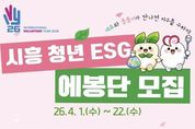 뉴스다 최광묵 기자 | 시흥시가 청년 주도의 환경 실천 확산과 ESG 가치 정착을 위해 ‘청년 ESG 에봉단’을 운영하는 가운데 1기 참여자 20명을 오는 4월 22일까지 모집한다. 올해 처음 추진되는 이번 사업은 청년 자원봉사를 중심으로 환경교육ㆍ캠페인ㆍ홍보 활동을 연계해 지역사회 내 ESG(환경ㆍ사회ㆍ지배구조) 실천 기반을 구축하고, 실질적인 활동 경험과 진로 탐색 기회를 제공하기 위해 마련됐다. ‘청년 ESG 에봉단’은 시흥에코센터 캐릭터 ‘에츄’와 시흥시자원봉사센터의 ‘봉봉’을 결합해 만든 명칭으로, 청년 대상 수요조사를 바탕으로 두 기관이 협업해 기획됐다. 선발된 참여자는 탄소중립 실천 프로그램과 캠페인을 직접 기획·운영하고, 시흥에코센터 환경교육 프로그램 운영에도 참여하게 된다. 이와 함께 팀 프로젝트와 개인 활동을 병행하며 ‘시흥탄소가계부플러스(+)’ 실천 활동에도 참여하게 된다. 활동은 이달부터 11월까지 진행된다. 환경과 자원봉사에 관심 있는 관내 거주 또는 소속 청년(19~39세)이면 누구나 지원할 수 있다. 모집 인원은 20명이며, 참여자에게는 봉사 시간이 인정되고 청년 ES