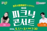 뉴스다 최광묵 기자 | 청주시는 청주시립예술단과 함께하는 제4회 ‘피크닉 콘서트’가 오는 5월 1일부터 3일까지 3일간 매일 오후 7시 30분 문화제조창 잔디광장에서 열린다고 밝혔다. 청주의 대표 문화브랜드 축제로 자리매김한 피크닉 콘서트는 올해로 4회째를 맞았다. 올해 역시 장르를 넘나드는 다양한 예술이 어우러진 프로그램으로 구성돼 가족, 친구, 연인 등 누구나 잔디광장에 앉아 여유롭고 특별한 봄밤을 즐길 수 있도록 준비했다. 첫날인 1일 ‘청주를 깨우다’ 공연에는 청주시립국악단과 청주시립무용단, 가수 솔지, 모듬북 연주자 장지훈, 전통연희단 난장앤판이 출연한다. 공연은 청주농악보존회의 여는 무대로 시작되며, 청주시립무용단의 ‘연꽃부채’와 ‘풍류장고&설장고’가 무대 분위기를 끌어올린다. 이어 장지훈의 모듬북 연주 ‘Heart of Storm’, 자연의 소리와 국악 장단을 접목한 ‘음유화풍’, 청주시립무용단의 창작무용 ‘꽃과 나비와 바람’이 펼쳐진다. 이후 가수 솔지가 무대에 올라 특유의 파워풀한 가창력으로 공연의 열기를 더하고, 전통연희단 난장앤판의 설장구협주곡 ‘소나기’가 첫날 무대의 대미를