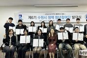 뉴스다 최광묵 기자 | 수원특례시는 12일 아주대학교 율곡관에서 ‘제6기 수원시 정책 청년참여단’ 발대식을 열었다. 제6기 수원시 정책 청년참여단은 아주대 행정학과 ‘행정과 지역사회’ 수업(교수 윤창근)을 수강하는 학생 12명으로 구성됐다. 청년이 주도하는 수원시 정책 개발을 목표로 활동한다. 학생들이 지역사회의 해결 과제를 발굴하고 시민참여 플랫폼 ‘새빛톡톡’을 활용해 맞춤형 정책을 제안하는 방식으로 진행된다. 앞서 1·2·4기는 아주대에서, 3·5기는 경기대에서 운영됐다. 이번 6기는 아주대에서 진행된다. 발대식에는 임정완 수원시 시민협력교육국장과 윤창근 아주대학교 행정학과 교수, 정책 청년참여단 학생 등이 참석했다. ‘행정과 지역사회’ 수업은 수원시 정책 제안·발표 등 팀 과제 수행과 수원시 6급 팀장 멘토와 함께하는 멘토링, ‘대학생 행정실무 인턴십’ 등으로 운영된다. 정책 청년참여단은 지금까지 총 100여 명이 참여해 25건의 정책을 제안했고 일부 제안은 수원시 정책으로 채택됐다. 수원시 관계자는 “젊은 세대의 시각에서 다양한 정책 아이디어를 발굴하고, 아이디어