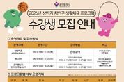 뉴스다 최광묵 기자 | 용인특례시 처인구는 지역 주민의 건강 증진과 여가 활성화를 위해 3월 3일부터 ‘2026년 처인구 생활체육 프로그램’을 운영한다. 어린이부터 성인까지 누구나 즐길 수 있는 생활체육 프로그램은 처인구 지역 9개 장소에서 6개 종목, 14개 강좌가 진행된다. 성인을 위한 생활체조(에어로빅, 줌바댄스)와 배드민턴 강좌는 3월부터 운영한다. 생활체조는 사전 신청 없이 현장에서 참여할 수 있고, 배드민턴은 사전 접수한 수강생을 대상으로 진행한다. 어린이를 위한 유소년 프로그램은 ▲음악줄넘기 ▲인라인스케이트 ▲풋살 ▲농구 등 4개 종목이며, 4월부터 상반기 수업을 시작한다. 모든 강좌는 무료로 운영되며 유소년 프로그램은 3월 16일부터 처인구 누리집에서 선착순 모집한다. 구 관계자는 “많은 시민이 체육활동을 통해 건강 증진과 일상 속 활기를 느낄 수 있도록 다양하고 알찬 프로그램을 마련해 운영하겠다”고 말했다.