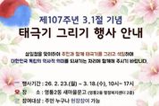 뉴스다 최광묵 기자 | 영통구 영통2동은 영통2동 새마을문고가 제107주년 3·1절을 맞아 지역 주민과 함께 독립운동의 뜻을 기리고 나라사랑의 의미를 되새기기 위한 ‘태극기 그리기’ 행사를 운영한다고 밝혔다. 이번 행사는 오는 3월 18일까지 매일 오전 10시부터 오후 5시까지 영통2동 새마을문고에서 진행되며, 전 연령대 누구나 현장 접수를 통해 참여할 수 있다. 참가자들은 직접 태극기와 무궁화를 그리며 3·1운동 정신을 생활 속에서 체험하는 시간을 갖는다. 제출 시 룰렛 돌리기를 통해 소정의 상품도 증정할 예정이다. 영통2동 새마을문고는 앞으로도 독서문화 활동과 연계한 다양한 생활문화 프로그램을 통해 주민 참여의 장을 넓히고, 지역의 역사·문화 가치를 함께 나누는 활동을 이어갈 계획이다.