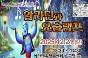 뉴스다 최광묵 기자 | 예산군은 아동친화도시 조성의 일환으로 가족참여형 뮤지컬 ‘알라딘과 요술램프’를 12월 21일 예산앤유행복센터에서 공연한다고 밝혔다. 이번 공연은 가족이 함께 즐기는 문화 체험을 통해 놀이·문화 영역 확대와 아동 발달권 증진을 도모하기 위해 마련됐다. 뮤지컬 ‘알라딘과 요술램프’는 원작을 아이들의 눈높이에 맞춰 재구성하고 무대체험 등 직접 참여 요소를 강화해 가족 모두가 몰입할 수 있도록 구성됐다. 관람을 희망하는 관내 아동 동반 가족은 12월 1일부터 12월 12일까지 사전 접수할 수 있으며, 선착순 모집으로 인원 충족 시 조기 마감된다. 신청은 공연 포스터의 정보무늬(QR코드)를 스캔해 신청서 작성 후 제출하는 방식으로 진행된다. 군 관계자는 “참여형 뮤지컬을 통해 관객 모두가 무대의 주인공이 돼 상상력과 감성을 키우는 특별한 시간이 되길 바란다”며 “관내 아동이 폭넓은 문화 경험을 누릴 수 있도록 다양한 프로그램을 마련해 아동친화도시 조성을 위해 노력하겠다”고 말했다. 한편 군은 아동의 권리가 존중받고 모든 아동이 행복하게 성장할 수 있는 환경