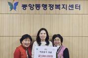 뉴스다 최광묵 기자 | 과천시 중앙동 통장단은 지난 1월 9일, 중앙동 행정복지센터에 성금 100만 원을 기부했다. 이번 성금은 중앙동 행정복지센터 내 커피 자판기 운영 수익금을 모아 마련됐으며, 성금은 지역 내 취약계층 지원을 위해 사용될 예정이다. 중앙동 통장단은 이번 성금 기탁뿐만 아니라, 평소에도 지역사회를 위한 다양한 봉사활동에 앞장서 왔다. 지난 동지에는 직접 팥죽을 쑤어 어르신들께 전달하는 ‘이웃사랑 팥죽 나눔’ 행사를 진행했으며, 관내 복지관 등에서 정기적인 배식 봉사에도 참여하고 있다. 이명숙 중앙동 대표 통장은 “주민들이 오가며 마신 커피 한 잔의 수익금이 모여 어려운 이웃에게 따뜻한 밥 한 끼, 든든한 힘이 될 수 있어 매우 기쁘다”라며, “앞으로도 소외된 이웃을 살피고 돕는 일에 최선을 다하겠다”라고 소감을 전했다. 신윤희 중앙동장은 “행정의 최일선에서 주민과 행정의 가교 구실을 훌륭히 수행해 주시는 통장님들의 노고에 깊이 감사드린다”라며, “성금은 도움이 필요한 이웃들을 위해 소중히 사용하겠다”라고 말했다.