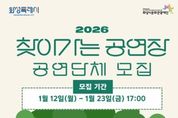 뉴스다 최광묵 기자 | (재)화성시문화관광재단은 1월 12일부터 1월 23일까지 ‘2026 찾아가는공연장’ 참여 공연단체를 모집한다고 밝혔다. ‘찾아가는 공연장’은 화성시의 곳곳에서 다양한 장르의 공연을 제공함으로써 시민들의 일상적인 문화예술 관람을 돕기 위한 사업으로, 2009년부터 시작된 화성시문화관광재단의 대표 문화사업 중 하나다. 지난 2025년도에는 공개 모집을 통해 40개의 공연단체를 선정했으며, 문화취약계층에 방문공연, 공원 광장 거리공연 등을 통해 다양한 장르의 공연으로 화성시민과 함께했다. ‘2026 찾아가는 공연장’은 약 140회차의 공연을 목표로 운영된다. 이번 공연단체 모집은 3년 이상의 공연활동 경력이 있는 공연단체라면 지역, 장르에 상관없이 신청가능하다. 접수는 1월 12일부터 23일까지 온라인으로만 가능하며, 1차 서류‧영상 심사, 2월 9일~10일 2차 실연‧면담 심사를 거쳐 2월 12일에 최종 선정단체 총 35팀을 발표할 예정이다. 화성시문화관광재단 안필연 대표이사는 “지역과 장르의 제한을 두지 않는 만큼, 화성시 곳곳에서 재능을 뽐내줄 다양한 예술 공연단체들의 많은 관심과 지