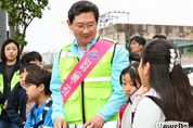 뉴스다 최광묵 기자 | 이상일 용인특례시장은 14일 아침 처인구 고림로에 위치한 고진초등학교 정문 횡단보도에서 어린이들의 안전한 통학환경 조성을 위한 교통지도 봉사활동에 참여하고 학교 주변 통학로를 점검했다. 이상일 시장은 서경란 고진초 교장, 녹색어머니회·학부모회·학생 등 60여명과 함께 등굣길 어린이들이 안전하게 길을 건널 수 있도록 돕고 운전자들에게 ‘어린이보호구역 내 서행’을 당부하는 교통안전 캠페인을 펼쳤다. 이 시장은 통학로 현장을 둘러보며 ▲고림고 유리방음벽 모서리 보호대 설치 ▲고림고~힐스테이트용인고진역 구간 횡단보도 너비 확대 ▲해당 구간 도로의 물고임 등 도로시설물 일제정비 ▲통학로 낙엽제거(보행자 미끄러짐 방지) 등의 추가 건의사항을 꼼꼼히 챙겼다. 이상일 시장은 녹색어머니회와 학부모회 회원들에게 “아이들의 등굣길을 지켜주셔서 감사 드린다”며 “학생들이 마음 놓고 통학할 수 있는 안전한 도시 환경을 만드는 것이 무엇보다 중요한 만큼 시에서도 현장을 잘 살펴 필요한 조치를 신속히 진행하겠다”고 말했다. 이 시장은 10월과 11월에도 용인신촌초, 백현초, 구갈초, 신월초, 함박초