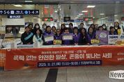 뉴스다 최광묵 기자 | 의정부시는 여성폭력 추방주간(11월 25일~12월 1일)을 맞아 11월 27일 의정부역사 3층에서 ‘여성 폭력 근절 캠페인’을 실시했다. 이번 캠페인에는 여성긴급전화1366 경기북부센터, 성폭력피해자 보호시설 의정부시 사랑의 쉼터, (사)사랑깊은뜰 경기북부가정문제상담소, 의정부장애인성폭력상담소, 성매매피해상담소 두레방, 여성친화도시 시민서포터즈(여의주) 등 유관기관 및 단체의 20여 명이 참여했고 많은 시민이 캠페인의 필요성을 공감했다. 여성폭력 추방주간은 폭력없는 사회를 위해 여성폭력 방지의 의미를 되새기는 기간으로 매년 11월 25일부터 12월 1일까지 운영하고 있다. 특히, 11월 25일은 UN이 정한 ‘세계 여성폭력 추방의 날’이기도 하다. 이날 캠페인에서는 ‘폭력 없는 안전한 일상, 존중이 빛나는 사회’를 주제로, 여성폭력 근절을 위한 서명운동 및 여성폭력 피해자 지원기관 안내를 비롯한 다양한 활동을 실시하며 여성폭력 방지의 의미를 되새기는 시간을 가졌다. 김동근 시장은 “향후에도 폭력 예방과 근절, 피해자 보호 및 지원에 대한 지속적인 홍보를 통해 안전한 사회분