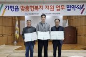 뉴스다 최광묵 기자 | 가평군 가평읍 행정복지센터는 최근 가평읍지역사회보장협의체(지사협), 유일닭강정과 ‘맞춤형복지 지원 업무협약’을 체결했다. 이번 협약으로 유일닭강정은 매월 가평읍 맞춤형복지팀에서 추천한 저소득계층 10가정에 닭강정을 지원해 주기로 했다. 장석조 가평읍장은 “복지사각지대 발굴뿐 아니라 민간 자원 연계가 복지 수준을 높이는 데 큰 역할을 한다”며 “이번 협약이 공공자원만으로는 충족하기 어려웠던 복지수요를 보완하는 데 큰 도움이 될 것”이라고 말했다. 유병훈 유일닭강정 대표는 “우리 지역 주민들과 마음을 나누고 싶어 맞춤형복지 지원 협약에 참여했다”며 “앞으로도 어려운 이웃을 위한 나눔과 봉사를 꾸준히 실천하겠다”고 밝혔다.