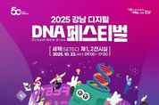 뉴스다 최광묵 기자 | 꿈이 모이는 도시, 미래를 그리는 강남구가 오는 10월 22일 오전 9시부터 오후 5시까지 세텍(SETEC) 제1‧2전시실에서 ‘2025 강남 디지털 DNA(Dream New Area) 페스티벌’을 개최한다. 구는 2023년부터 ‘학교로 찾아가는 디지털 미래인재’ 교육 과정을 개발해 운영해 오고 있으며, 여기에 특수학교를 포함한 관내 61개 초·중학교가 참여하고 있다. 올해 상반기에는 42개교 학생 7,300여 명이 이 교육을 이수했다. 이번 페스티벌은 이러한 교육 성과를 공유하고, 학생들이 익힌 기술을 선보이며 미래 기술에 대한 관심을 확장할 기회로 기획됐다. 특히 올해는 개청 50주년을 기념해 프로그램 규모를 대폭 확대해 초·중학생 약 3,500명이 참여할 예정이다. 페스티벌은 크게 ▲AI 경진대회 ▲50주년 기념 AI 체험·전시존 ▲진로직업·미래기술‧평생학습 체험부스 ▲특별강연으로 구성됐다. AI 경진대회는 ‘상상과 기술이 만나는 곳, 2025 강남 디지털 미래인재 챌린지’라는 이름으로 개최되며, 초등학생을 대상으로 한 AI 자율주행차·드론대회와 중학생 대상의 AI 헤리티지 해커