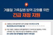 뉴스다 최광묵 기자 | 겨울철 가축질병 방역 강화를 위한 긴급 재정 지원 - 고병원성 조류인플루엔자 방역 강화를 위해 9개 시·도*에 재난안전특교세 30억 원을 지원 *광주, 세종, 경기, 충북, 충남, 전북, 전남, 경북, 경남 - 이번 지원은 고병원성 조류인플루엔자가 지속적으로 발생하는 지역의 소독약품 구입, 거점소독시설 및 이동통제초소 운영 등 보다 강화된 현장 방역활동을 지원하기 위해 결정 - 행안부는 지난해 11월 24일에 14개 시·도에 고병원성 조류인플루엔자 확산 방지를 위한 재난안전특교세 50억 원을 지원했으며 이번까지 포함하면 총 80억 원을 지원 [뉴스출처 : 행정안전부]