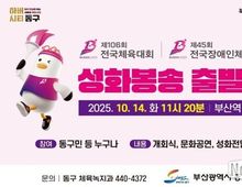뉴스다 류대현 기자 | 부산동구는 오는 10월 14일, 제106회 전국체육대회 및 제45회 전국장애인체육대회의 성공적인 개최를 기원하고 대회의 시작을 알리는 성화봉송 출발식행사를 개최한다고 밝혔다. 이날 행사는 오전 11시 20분 부산역 광장에서 300여명의 구민이 참여하는 가운데, 치어리더의 축하공연을 시작으로 다채로운 문화공연과 함께 성화봉 점화 및 인계, 동구 성화봉송 구간의 성화 출발 순서로 진행된다. 동구의 성화봉송 구간은 부산역에서 부산진역 문화플랫폼까지의 거리를 7개 구간으로 구간별 주주자 2명, 보조주자 8명으로 10명을 한 팀으로 해 총70명의 주자가 참여한다. 동구는 전국체전의 성공적 개최를 위한 대대적인 홍보를 위해 동구청사 및 각 동 행정복지센터와 부산진역 문화플랫폼 등에 대형 현수막을 게첨할 계획이며 동구 주민 뿐만 아니라, 부산 시민들과 25년만에 부산에서 개최되는 전국(장애인) 체전의 열기를 함께 할 계획이다. 김진홍 구청장은 “2025년 전국(장애인)체전이 성공적으로 개최되기를 바라는 부산동구민의 염원을 담아 성화봉송 축발식을 개최하게 됐으며, 체전이 성황리에 개최될 수 있도록