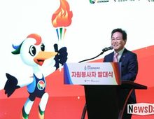 뉴스다 류대현 기자 | 경상남도는 8일 김해 롯데호텔앤리조트 가야홀에서 ‘2026 전국생활체육대축전’의 성공적인 개최를 지원할 자원봉사자 발대식을 열고 본격적인 활동의 시작을 알렸다. 이번 발대식은 대회 개막을 앞두고 자원봉사자들의 사명감을 높이고 결속력을 다지기 위해 마련됐다. 행사에는 박완수 도지사를 비롯해 신문현 경상남도자원봉사센터장, 신대호 김해시 부시장, 자원봉사자 등 400여 명이 참석해 성공 개최를 위한 결의를 다졌다. 특히 이번 대축전을 위해 실시한 자원봉사자 모집에는 1,000명 선발에 1,100여 명이 넘는 도민이 지원해, 전국 규모의 스포츠 축제를 향한 경남도민들의 높은 관심과 뜨거운 참여 의지를 확인시켰다. 이날 박완수 도지사는 격려사를 통해 “자원봉사는 결코 쉬운 일이 아니며, 우리 사회를 지탱하는 중요한 역할을 하고 있다”면서 “재난 현장과 각종 행사에서 묵묵히 헌신해 온 자원봉사자들의 노력이 지역과 사회를 빛나게 해왔다”고 강조했다. 이어 “경남 자원봉사자들의 헌신과 열정은 전국적으로도 높은 평가를 받아왔다”며 “이번 생활체육대축전에서도 그 역량을 발휘해 경남의 위상을 한층 높여주