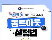 뉴스다 최광묵 기자 | ■ 옵트아웃이란? 옵트아웃이란 내가 남긴 대화나 콘텐츠를 AI 모델학습·개선에 사용할 수 없도록 거부하는 설정 ■ ChatGPT - 모바일 버전 왼쪽 상단 메뉴 클릭 후 프로필 아이콘 클릭 → 데이터 제어 클릭 → 모든 사용자 대상 모델 개선 버튼 끄기 ■ 제미나이 - 모바일 버전 오른쪽 상단 프로필 아이콘 클릭 → 제미나이 앱 활동 클릭 → 활동 기록 보관에서 사용 안함(중지)로 변경 ■ ChatGPT - PC 버전 왼쪽 하단 프로필 아이콘 클릭 → 설정 클릭 후 데이터 제어 클릭 → 모두를 위한 모델 개선 버튼 끄기 ■ 제미나이 - PC 버전 왼쪽 상단 메뉴 클릭 후 활동 클릭 → 활동 기록 보관에서 사용 안함(중지)로 변경 생성형 AI 옵트아웃으로 개인정보를 더욱 안전하게 보호하세요! [뉴스출처 : 개인정보보호위원회]