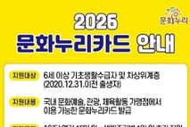 뉴스다 최광묵 기자 | 정부 정책에 따라 2026년부터 통합문화이용권(문화누리카드)과 청년문화예술패스 제도가 개편된다. 이에 따라 양주시는 개편 기준에 맞춰 지역대상자를 대상으로 해당 사업을 확대 시행한다고 밝혔다. 통합문화이용권(문화누리카드)은 6세 이상 기초생활수급자와 차상위계층을 대상으로 문화·여행·체육 활동을 지원하는 사업으로, 2026년에는 지원 인원이 16,386명으로 전년 대비 1,687명 증가한다. 또한 1인당 지원 금액도 기존 14만 원에서 15만 원으로 1만 원 인상된다. 특히 청소년(13~18세)과 생애전환기(60~64세) 대상자는 1만 원이 추가 지원돼 총 16만 원을 지원받게 된다. 청년층의 문화 향유 기회를 넓히기 위한 청년문화예술패스도 지원 대상이 확대된다. 2026년 지원 인원은 1,645명으로 전년 대비 727명 증가하며, 지원 연령 역시 기존 19세에서 19~20세로 확대된다. 통합문화이용권(문화누리카드)은 2월 2일부터 누리집 또는 각 읍면동 행정복지센터를 방문해 신청 가능하며, 자세한 사항은 문화누리카드 고객지원센터로 문의하면 된다. 청년문화예술패