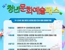 뉴스다 최광묵 기자 | 창원특례시는 청년들의 문화 향유 기회를 확대하고 문화소비 역량을 높이기 위해 ‘2026년 청년문화예술패스’ 사업을 오는 25일부터 본격 시행한다. 청년문화예술패스는 협력예매처에 등록된 공연·전시·영화 티켓 예매 시 사용할 수 있는 온라인 포인트를 지원하는 사업이다. 올해는 지원 대상을 기존 19세에서 20세까지 확대해 2006~2007년생 청년에게 1인당 연 20만 원 상당의 온라인 포인트를 지급한다. 다만 2006년생 가운데 2025년 청년문화예술패스 포인트를 이미 사용한 경우에는 지원 대상에서 제외된다. 신청 및 발급은 공식 누리집에서 회원가입을 한 후 신청하면 된다. 신청기간은 ▲1차(2월 25일 ~ 6월 30일), ▲2차(8월 10일 ~ 11월 30일)이며, 예산 소진 시 조기 마감될 수 있다. 발급받은 패스는 2026년 12월 31일까지 사용할 수 있으며 상반기 발급 후 7월 31일까지 사용 이력이 없을 경우 지원금은 회수된다. 장금용 창원특레시장 권한대행은 “청년문화예술패스를 통해 사회로 첫발을 내딛는 청년들이 문화예술을 더욱 쉽게 접하고, 향유할 수 있는 기회