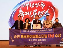 뉴스다 최광묵 기자 | 순천시는 대표 문화관광축제인 ‘순천 푸드앤아트페스티벌’이 24일 서울 용산구 피스앤파크 컨벤션에서 열린 ‘제14회 대한민국축제콘텐츠대상’ 시상식에서 문화·예술 부문 대상을 수상했다고 밝혔다. 대한민국축제콘텐츠대상은 축제 산업의 글로벌 경쟁력 강화를 위해 (사)한국축제콘텐츠협회가 주관하는 시상식으로, 축제 콘텐츠의 독창성과 완성도 및 지역 기여도 등을 평가해 우수 축제를 선정해왔다. 순천 푸드앤아트페스티벌은 그간의 꾸준한 성과를 바탕으로 문화·예술 콘텐츠를 혁신적으로 강화한 점을 높게 평가받으며 대상의 영예를 안았다. 이번 수상은 거리 곳곳에서 펼쳐진 미술·공연·전시·체험 프로그램을 대폭 확대해 시민과 관광객의 참여를 이끌어낸 점이 주효했다. 특히 중앙로 곳곳에서 펼쳐진 스토리형 마임과 서커스 공연은 관객과의 즉흥적 호흡과 현장 참여를 유도하며, 단순히 ‘보는 행사’에서 ‘함께 만드는 참여형 문화예술행사’로 축제의 지평을 확장시켰다는 평가다. 또한 국립한글박물관과의 협업으로 선보인 ‘사투리 이야기 콘서트’는 전남 방언의 독특한 정서를 지역 고유의 문화자산으로 재조명함과 동시