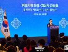 뉴스다 최광묵 기자 | 이재명 대통령은 순방 일정을 마치고 귀국하기에 앞서 25일(현지시간) 튀르키예 앙카라에서 동포·지상사 간담회를 개최했다. 이번 간담회에는 이스탄불과 앙카라 등 튀르키예 전역에 거주하는 동포단체 대표들과 지상사 주재원, 문화·교육 관계자 등 약 150명이 참석했다. 이 대통령 부부를 맞이한 김정호 튀르키예 한인회장은 튀르키예 동포 사회를 대표해 "한국과 튀르키예는 70년 전 전장에서 서로를 지킨 특별한 형제의 나라로, 이번 방문이 양국 협력의 새로운 전기를 마련하기를 바란다"는 뜻을 전했다. 이 대통령도 격려사를 통해 "대한민국과 특별한 관계인 튀르키예에서 동포 여러분들이 대한민국의 얼굴이자 외교관으로 가교 역할을 하고 계신다"며, "여러분들이 한국을 걱정하는 것이 아니라, 한국이 여러분들의 든든한 지지자가 되도록 하겠다"고 말했다. 이어 "대한민국은 동포들을 포함해 약 6천만 명이 함께 사는 공동체로, 모든 국민들의 목소리가 중요하다"고 강조하며, 동포들에게 모국이 더 나은 세상으로 발전하기 위한 의견을 적극적으로 발언해 줄 것을 당부했다. 엄영인 앙카라 한